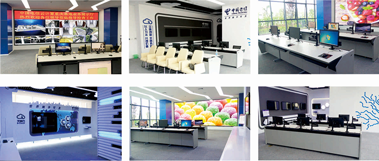 中国电信云计算(重庆)基地业务展厅兼监控指挥中心大屏显示系统建成于2017年6月,涵盖显示、扩声、智能控制及调度操作台系统,显示系统采用业界最窄双边1.7mm拼缝的三星原装55寸窄边显示器24块以4×6的组合形式拼接而成,扩声系统由美国EAW音箱、Shure话筒、Symetrix处理器构成,控制台选用业界人体工程学领先的铁力山,运用智能显示技术与业务展示功能区相结合的方式展示园区规划、机楼结构功能区、重要位置的监控、业务支撑系统的演示和云计算相关业务的体验。