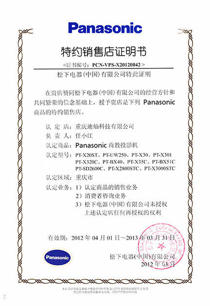 公司是EPSON投影机金牌代理商、Panasonic投影机金牌代理商、光峰激光投影机重庆总代理 卡西欧激光 投影机总代理、宏碁投影机核心代理商、锐捷网络金牌分销商;全通阅卷系统独家总代理,史密斯直饮水核心 代理商。