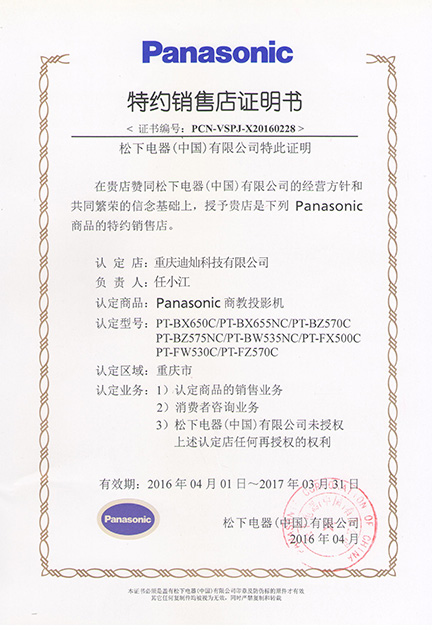 公司从2007年以来一直都是重庆政采定点供应商.公司代理的EPSON、Panasonic投影机、光峰激光投影机、 宏碁投影机、入围重庆市政府采购定点供应品牌。